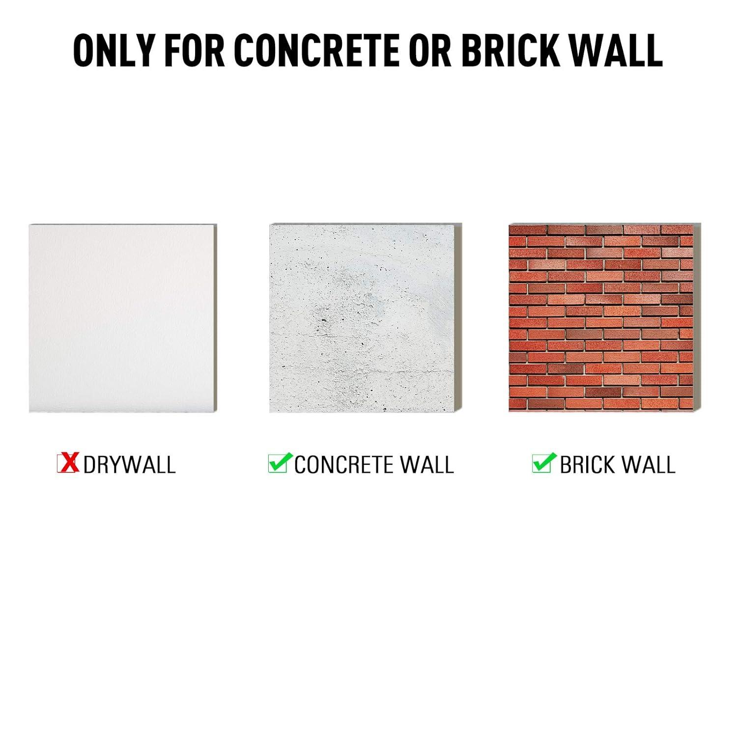 EASY INSTALLATION – With the corresponding hole in the wall, it is easy to hammer the anchor bolt into the wall. Kindly noted that: Mounting Dream concrete anchors are designed for concrete, brick wall, but not drywall, stucco or plaster.