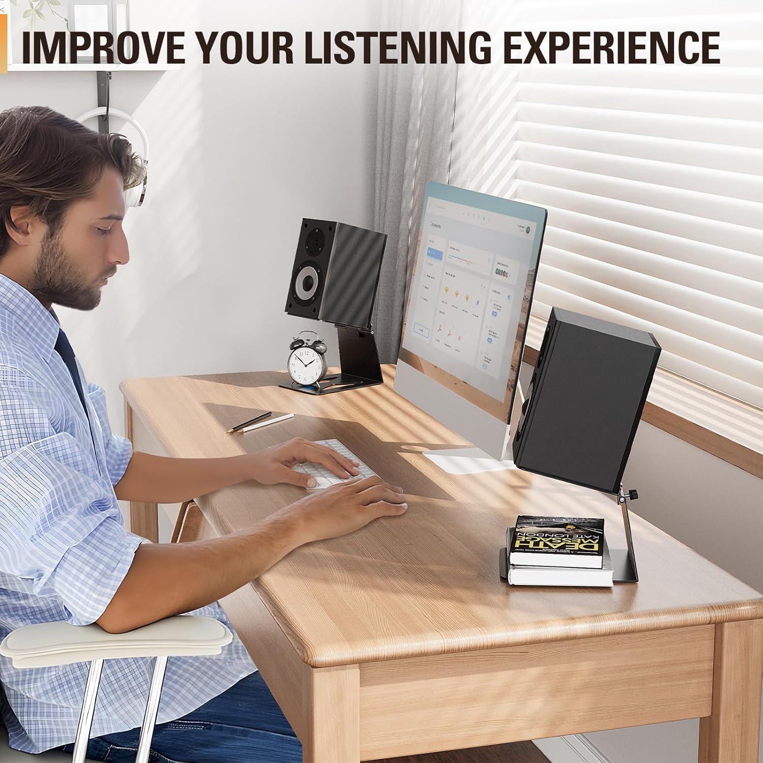 Stable and Durable Construction: Desktop speaker stands compatible with most speakers up to 33 LBS, providing secure support for a wide range of speaker sizes, ensuring stability and minimizing vibrations