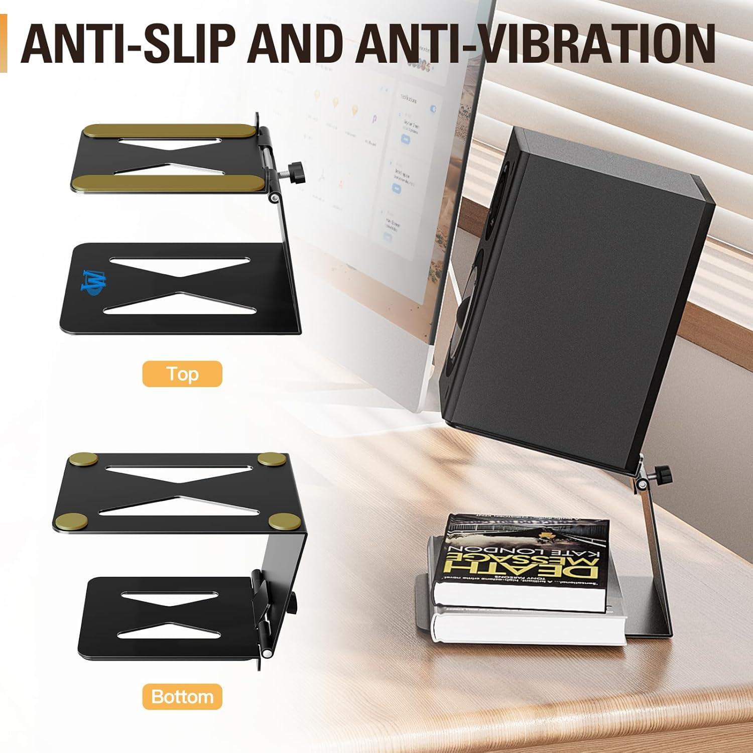 Non-Slip & Non-Vibration: Equipped with rubber pads, ensuring the speaker remains securely stable. Also with four rubber feet that effectively absorb impacts, bounces, or vibrations on the desk's surface, preventing the stand from moving or scratching