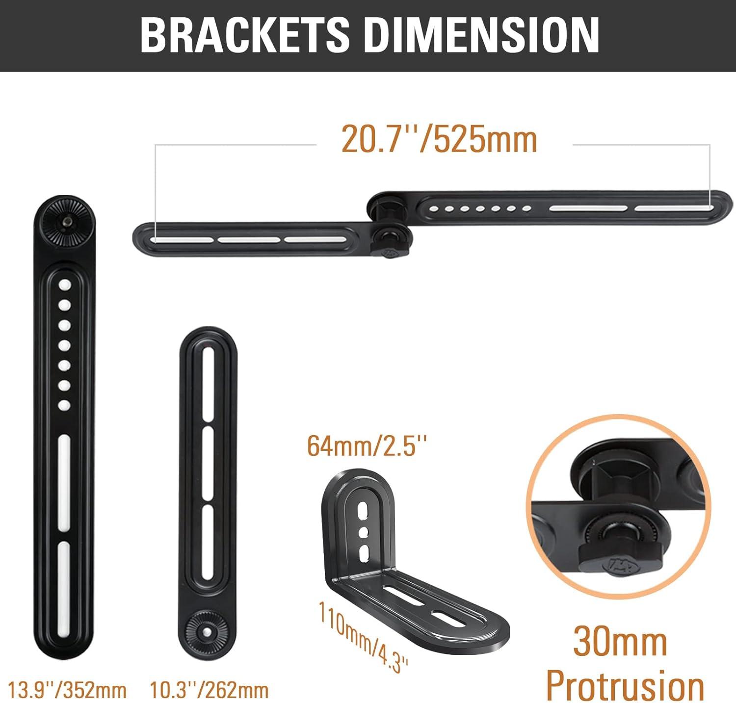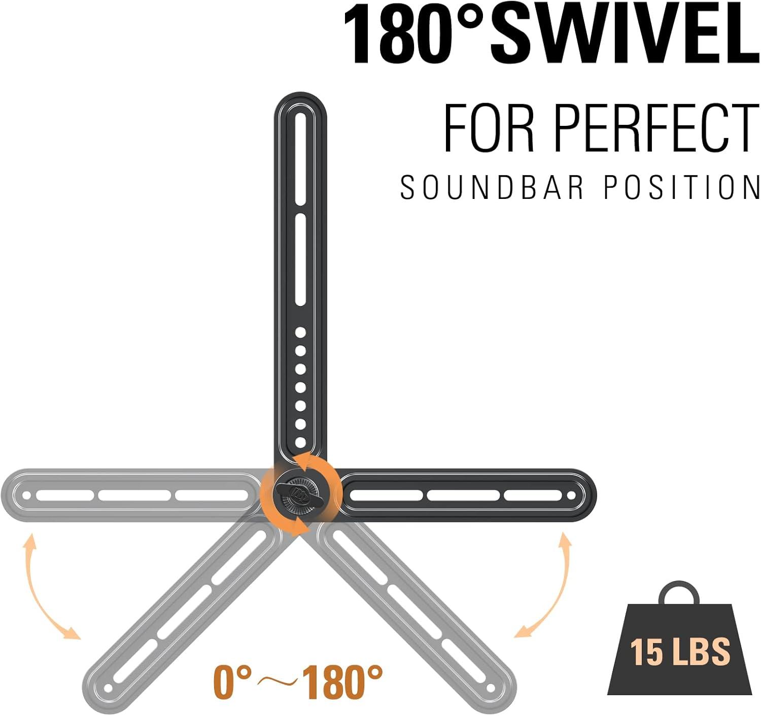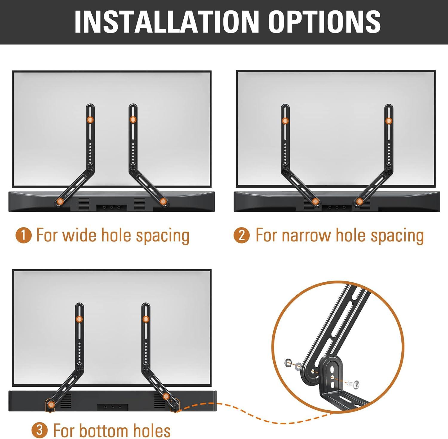 Create a Clean & Neat Look: Tool-less knob and Teeth on arms’ connection can easily secure the sound bar firmly in place, providing a clean look and save space, which can avoid leaving screw holes in wall.