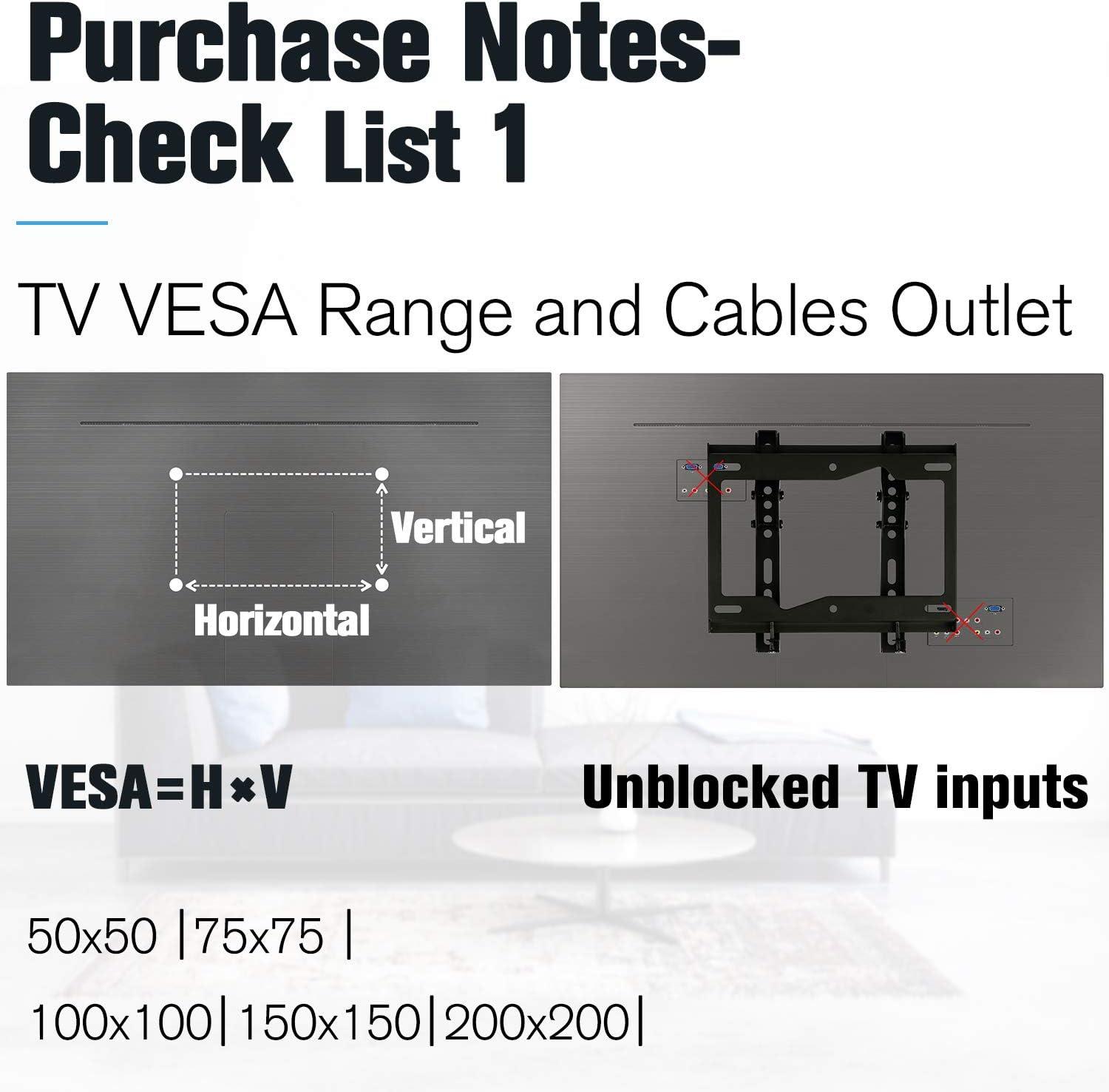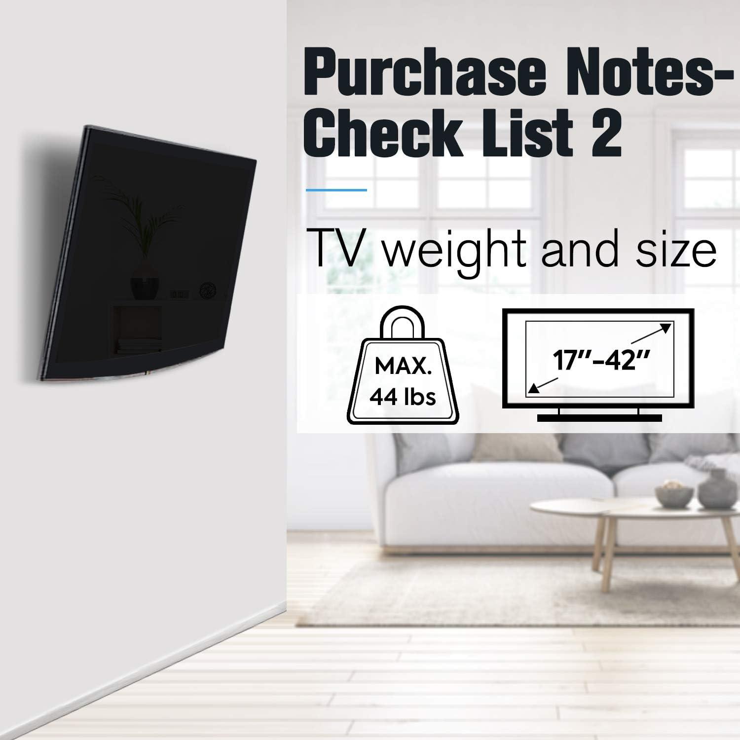 DESIGN FOR SMALL TV: TV wall mount fits for most of 17-42″ Lcd/LED/Plasma TVs. Tv mount up VESA 200x200mm and 44lbs ( fits VESA 75x75mm, 100x100mm, 200x100mm, 200x150mm, 200x200mm).