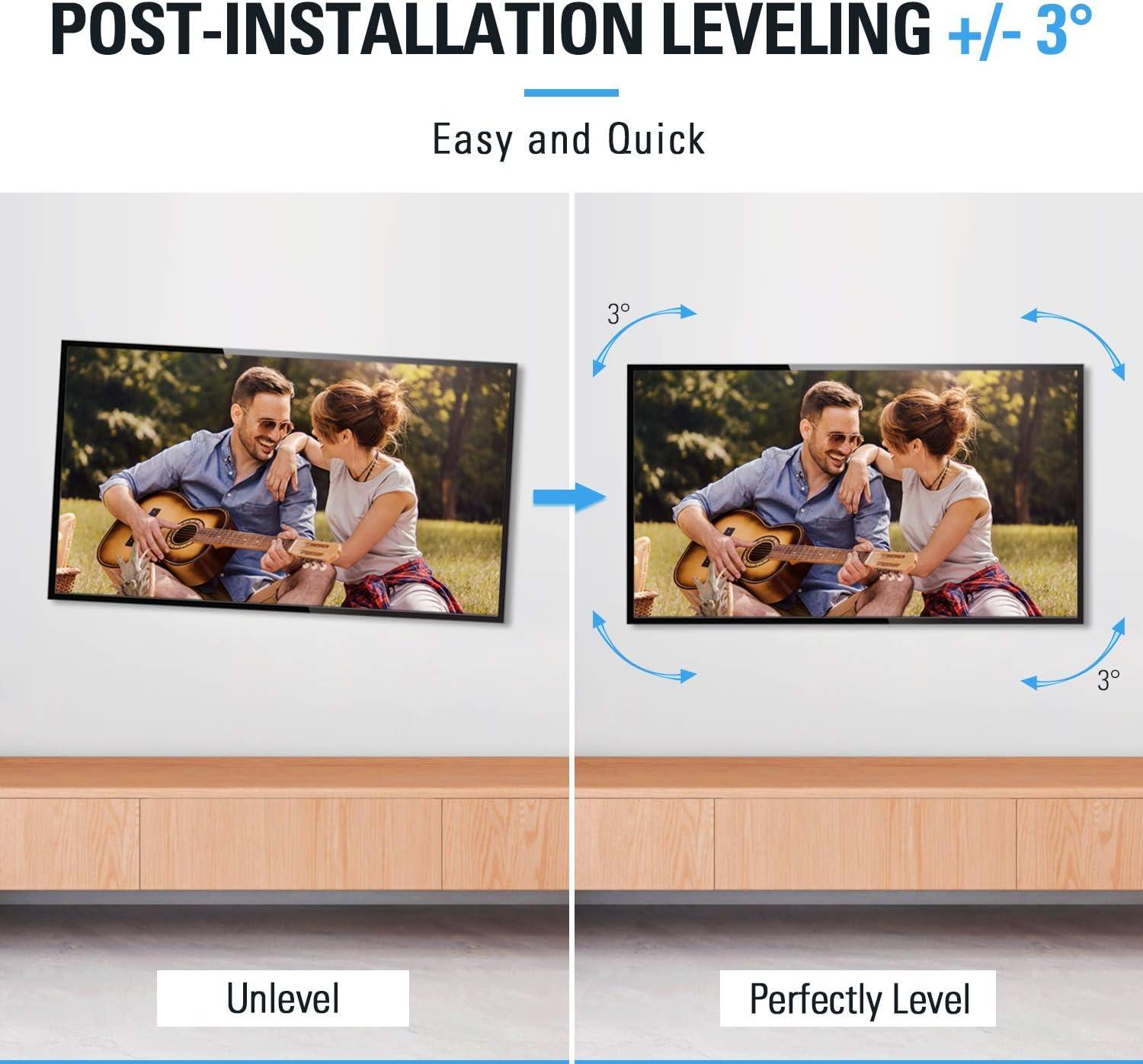 UPGRADE VIEWING EXPERIENCE: Full motion TV wall mounts tilt TV forward 15°/backward 5° to reduce screen glare, neck stain, eye-strain. With up to ±45° swivel, wall mount TV bracket can point the TV almost anywhere. +/-3° rotation adjustments for maximum viewing flexibility.