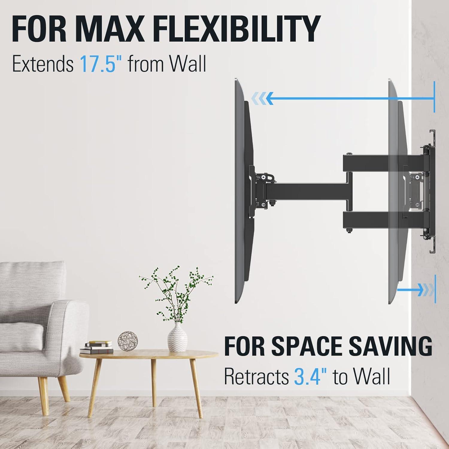 THE ULTIMATE EXTENSION: TV mounts extend up to 15.2 inch and sits 3.1 inch from the wall with 6 articulating dual arms. Superior welding ensures smooth and stable movements.