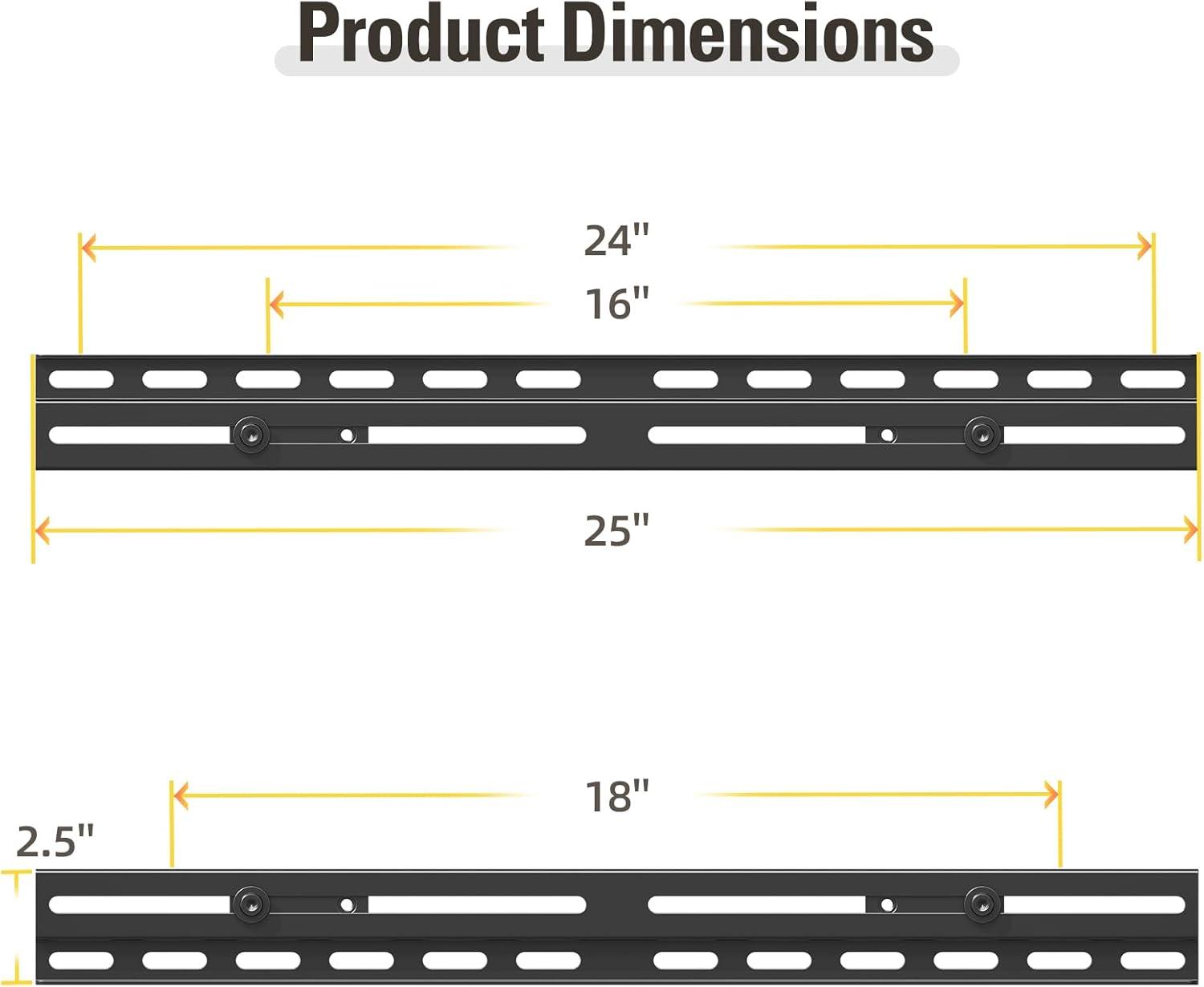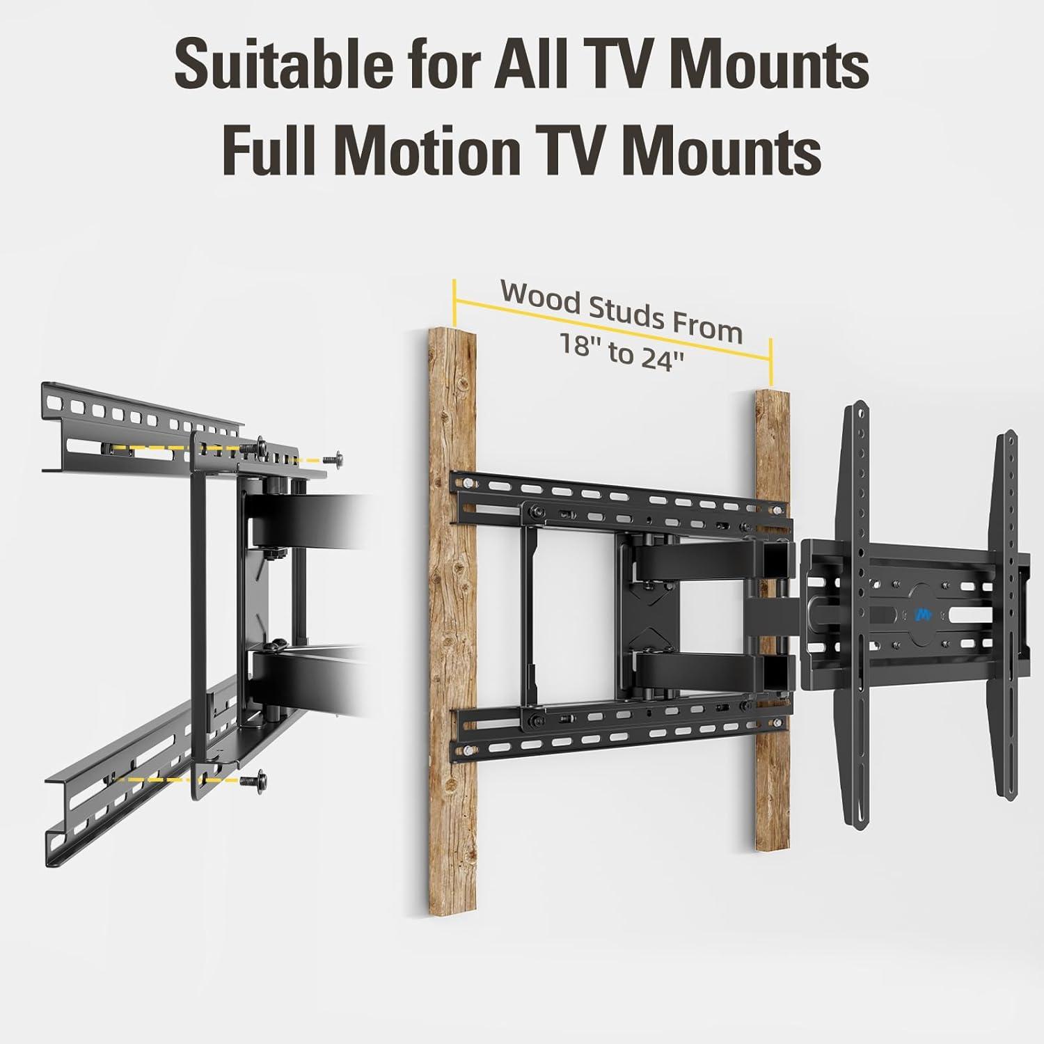 [TV Mount Compatibility] Extended bracket for 16” or less than 16″ wall plate, fitting 16” – 24” wood studs.