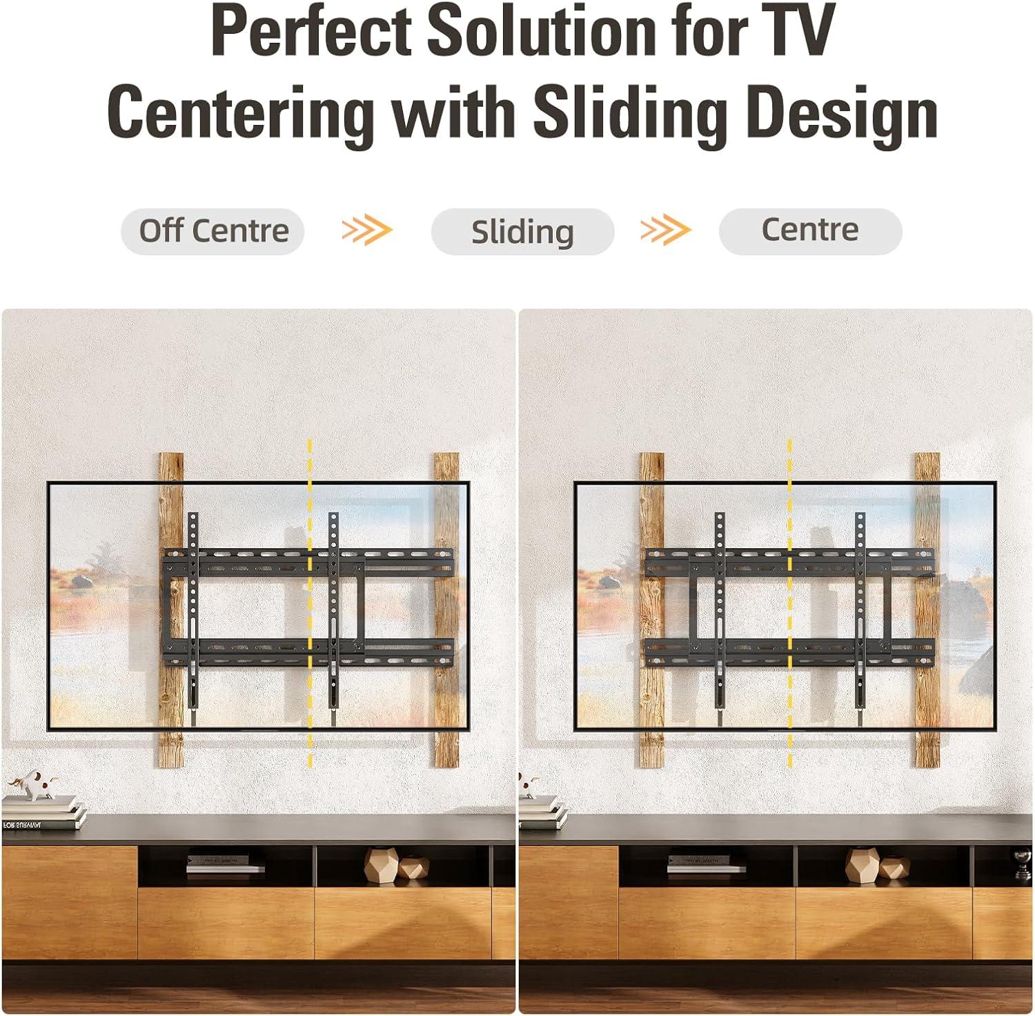 [Articulating Design & Spacing Saving] Easy centering TV in position by shifting mount from left or right, 8’’ space to adjust TV in centered position.